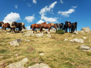Crêtes et pâturages :brebis, vaches, chevaux et leurs petits.