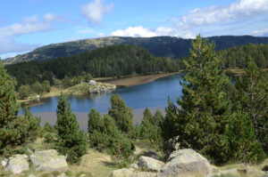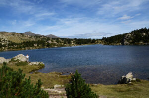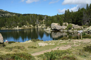 Lac du Vives. On reconnait au fond le grand (2810m) et le petit Péric qui dominent le lac des Bouillouses.