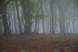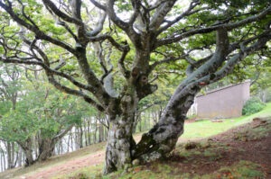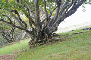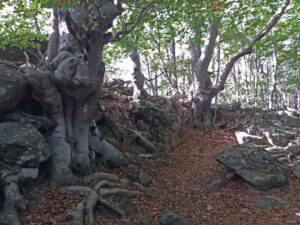 Les hêtres de la forêt de la Massane prennent des formes très tordues quand ils sont prés de la ligne de crête car ils sont exposés à des vents souvent puissants ici.
