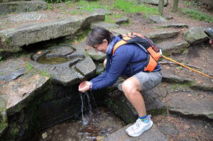 On est au dessus de la source de Manel, ce berger poète qui vivait vers 1880 à St Martin de l'Albère. C'est lui qui a décoré et sculpté cette fontaine , ainsi que d'autres sites dans les Albères.