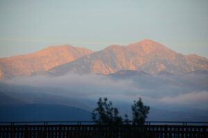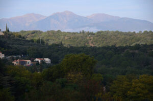 Zoom sur le massif du Canigou depuis le parking de Ceret.