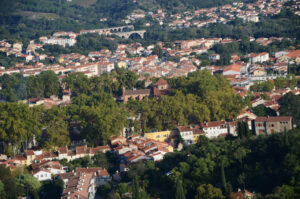 La cascade de Ceret par le couvent des Capucins du 16ème siècle et le château seigneurial de Céret.